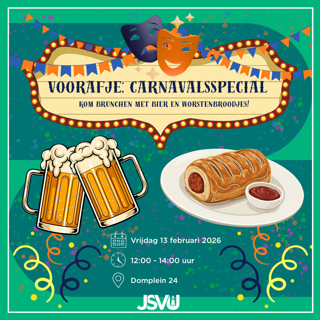 Op vrijdag 13 februari reizen wij af naar het zonnige zuiden om carnaval te vieren. Kom jij naar het voorafje: Carnaval special op de JSVU?!? Om 12:00 uur worden de eerste biertjes en worstenbroodjes genuttigd. Om 14:00 uur zal het 58ste afreizen naar het mooie Lampegat. Zien we je daar? Trek je beste outfit uit de kast en haal snel je kaartje, de biertjes en worstenbroodjes staan al klaar!