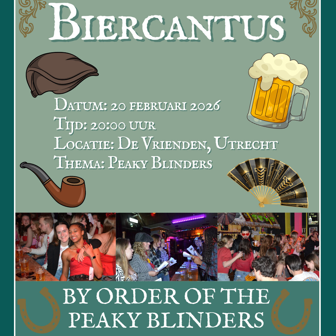 Na een geheime ontmoeting in de lokale pub van de Peaky Blinders, zijn ze eruit! Het wordt tijd voor de BIERCANTUS!! Wanneer de rook optrekt, de lichten dimmen en de glazen worden gevuld, is er geen weg meer terug. Op vrijdag 20 februari verzamelen we ons om 20:00 uur in “de Vrienden” voor een avond die eindigt in luid gezongen cantusliederen en geheven bier!