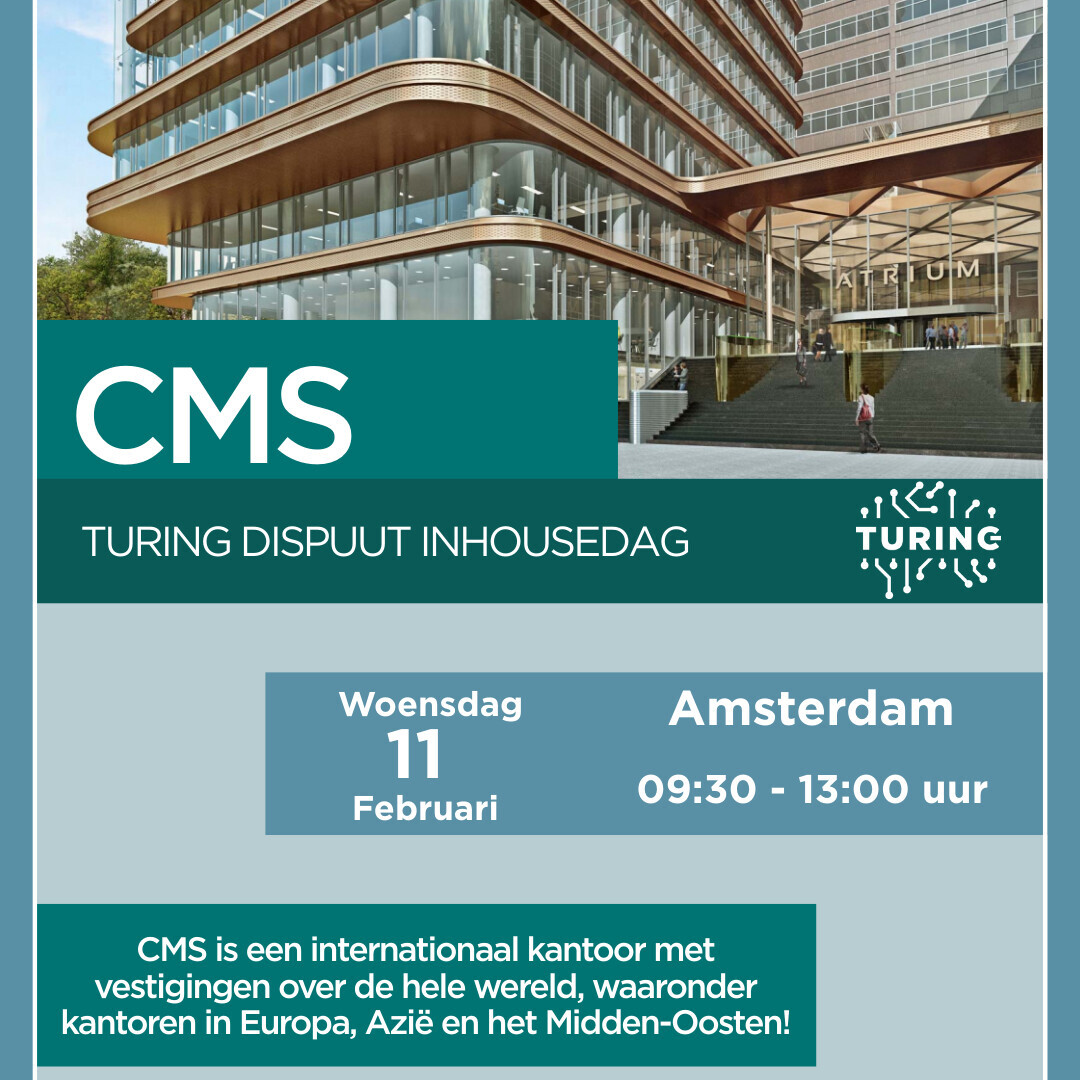 Op woensdag 11 februari organiseert het Turing Dispuut een kantoorbezoek bij CMS, een toekomstgerichte organisatie van advocatenkantoren in meer dan 45 landen, met 6.300 juristen! Heb jij interesse in het IE-recht en ben je benieuwd geworden? Schrijf je dan in!
