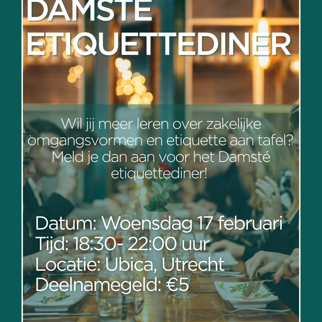 Tijdens ons etiquettediner leren we je meer over de achtergrond en toepassing van klassieke èn moderne etiquette. Van formele recepties tot belangrijke evenementen en etiquette aan tafel. Weet jij bijvoorbeeld hoe je je glas moet vasthouden tijdens een receptie? En wat doe je met je armen en handen wanneer je met iemand in gesprek bent? En waar staat dat broodbordje ook alweer tijdens een diner? Wat doe je met je telefoon? Al deze vragen en meer worden beantwoord tijdens ons etiquettediner. Bereid je voor om jouw kennis en zelfvertrouwen te vergroten in situaties waar etiquette een rol speelt. Het is meer dan alleen goede manieren; het gaat om het creëren van een professionele uitstraling die blijft hangen.